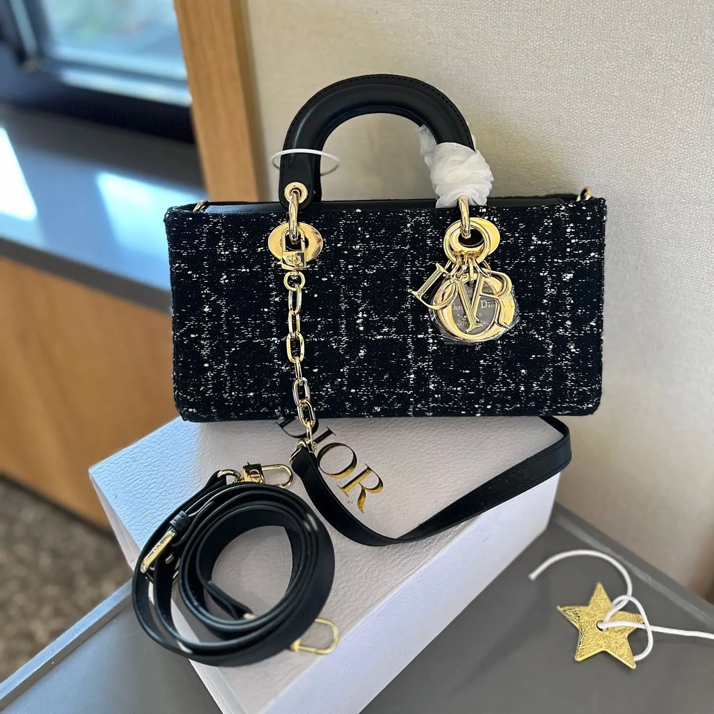 【Dior】バッジショルダーストラップ付き4つのコンパートメント、ハイエンド品質のダイアナ妃バッグ